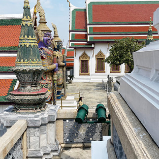 To visit the Grand Palace is an amazing experience – to observe the grandeur and kaleidoscope of colour when your eyes are forced upwards while the statues look down on you and the Temples outshine the sun.
